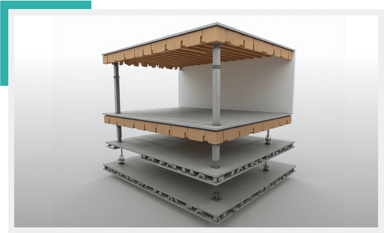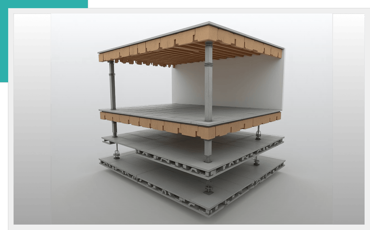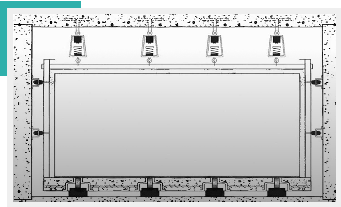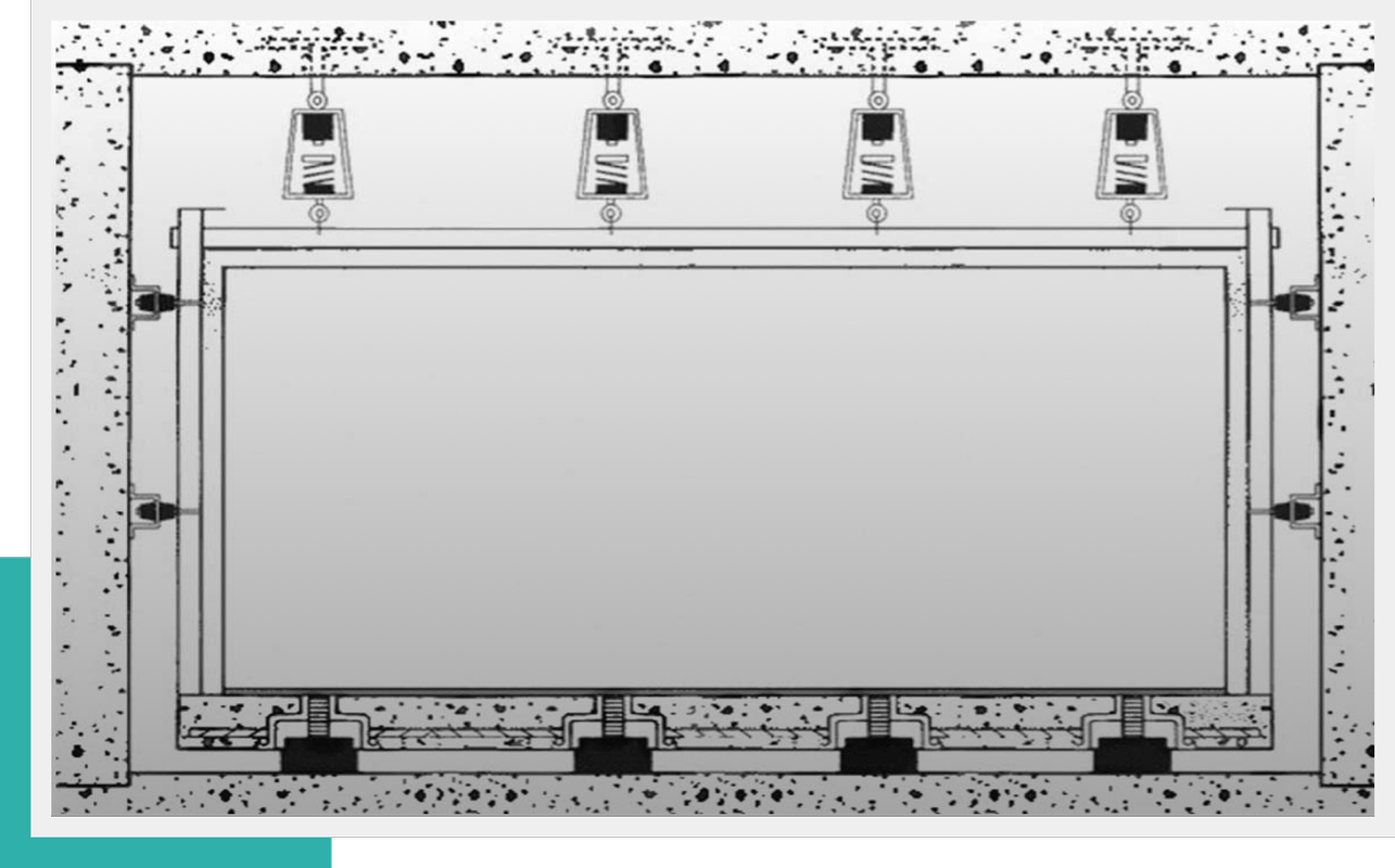 High-performance isolation system for sensitive environments, such as recording studios or home theaters, preventing sound leakage and vibration
