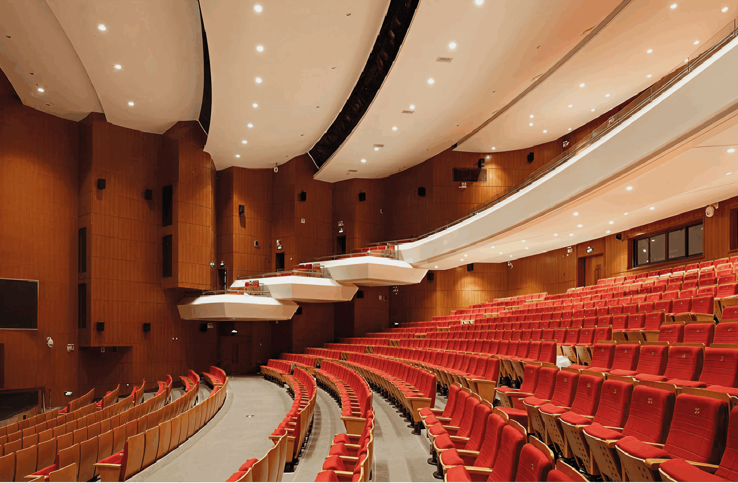دار الأوبرا، قاعة السينما، استوديو التسجيل، غرفة البث، محطة التلفزيون، محطة الراديو، المكتب التجاري، القاعة متعددة الاستخدامات، غرفة الاجتماعات، الاستوديو، قاعة الحفلات الموسيقية، المدرج، وجدار الصالة الرياضية.