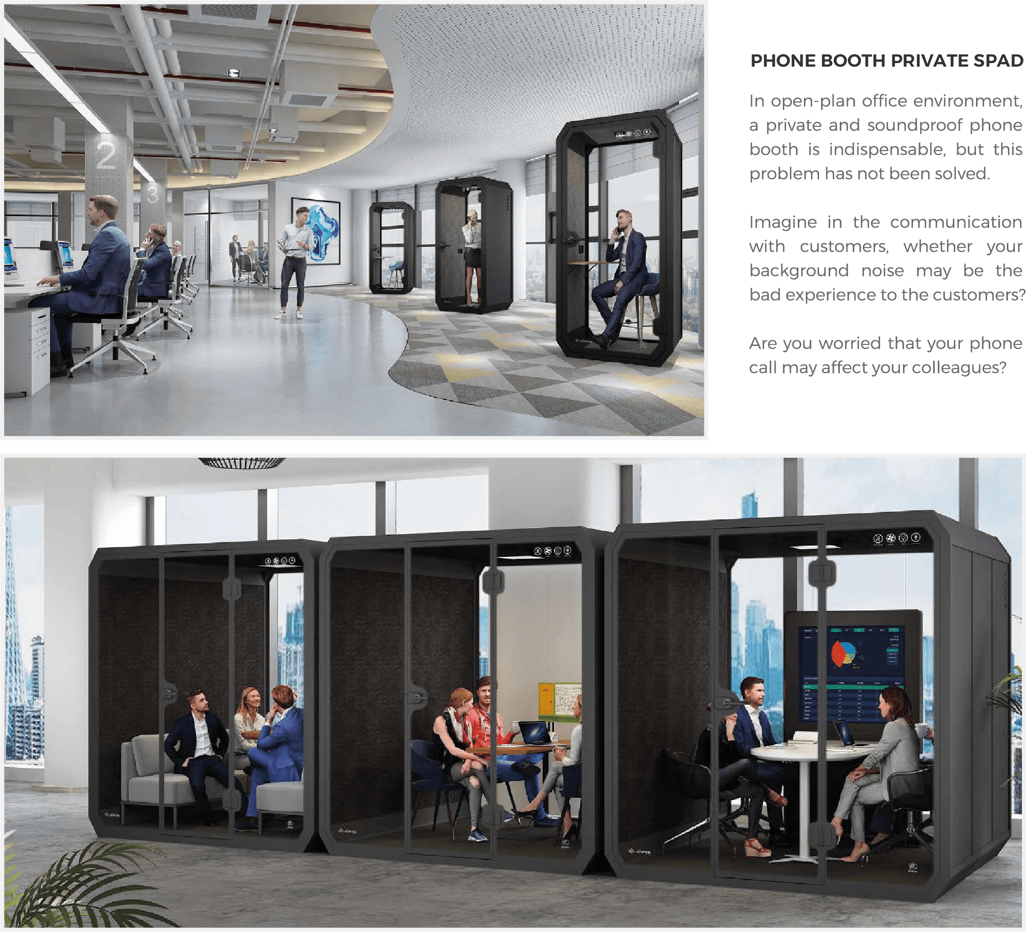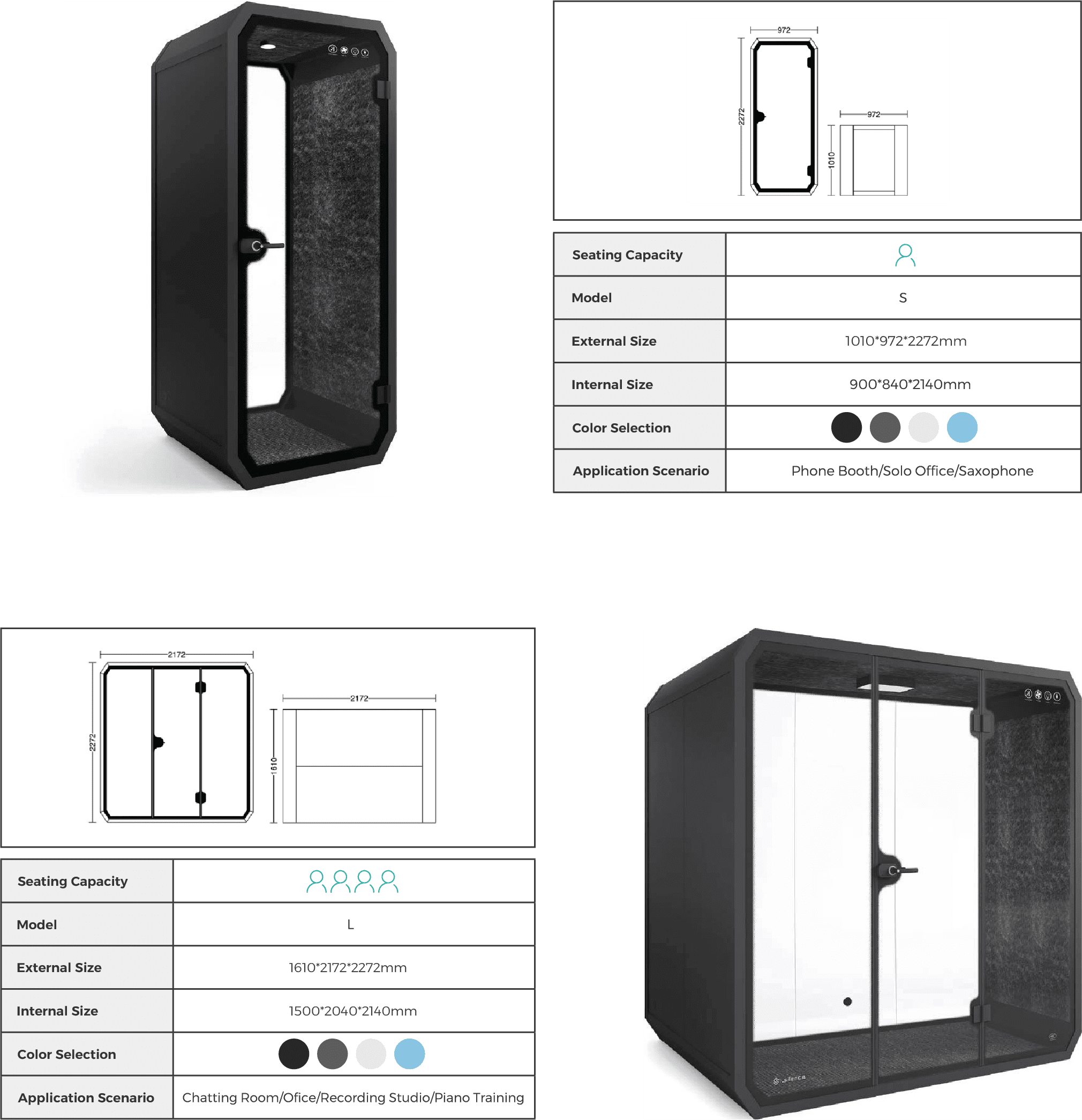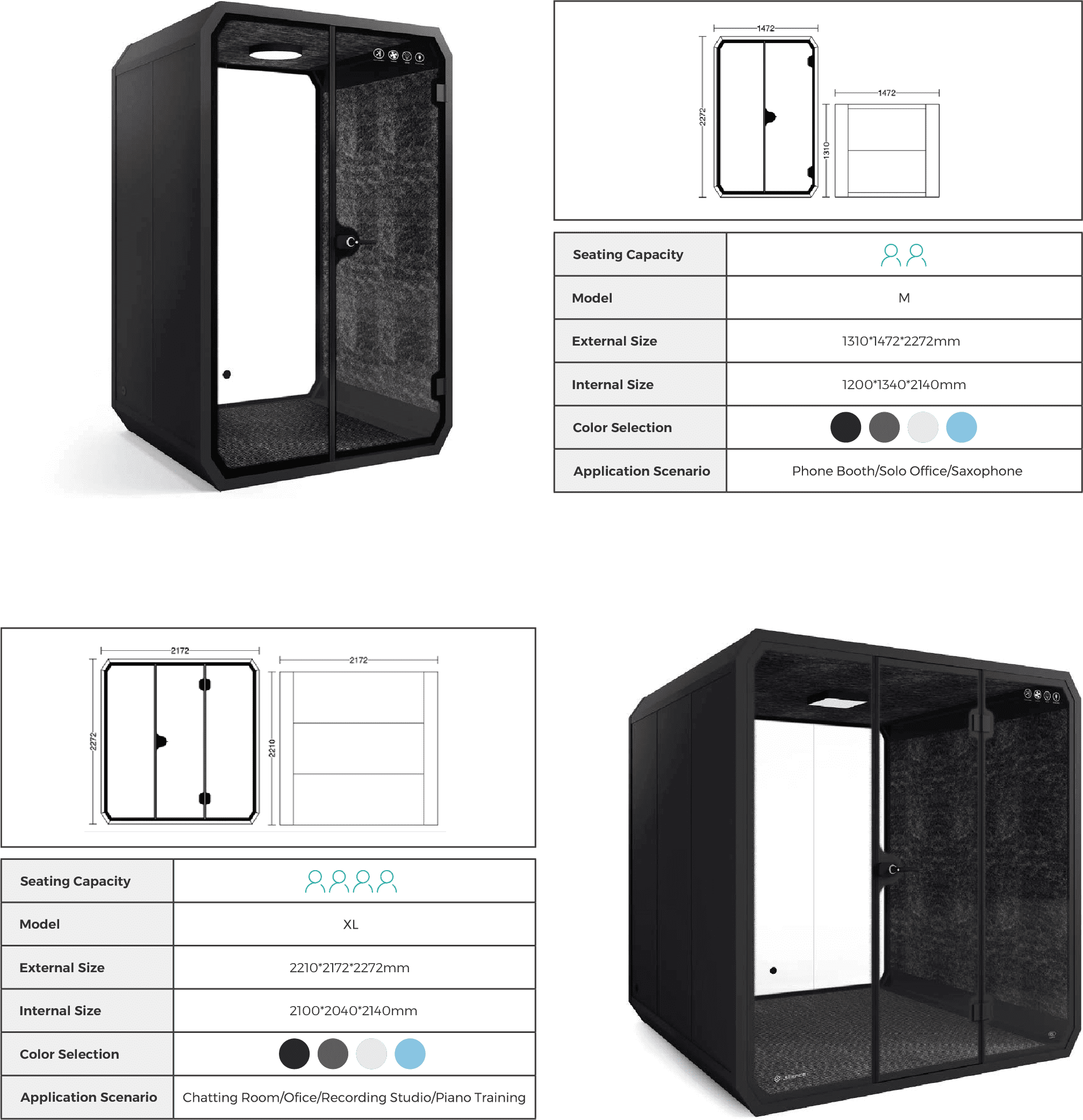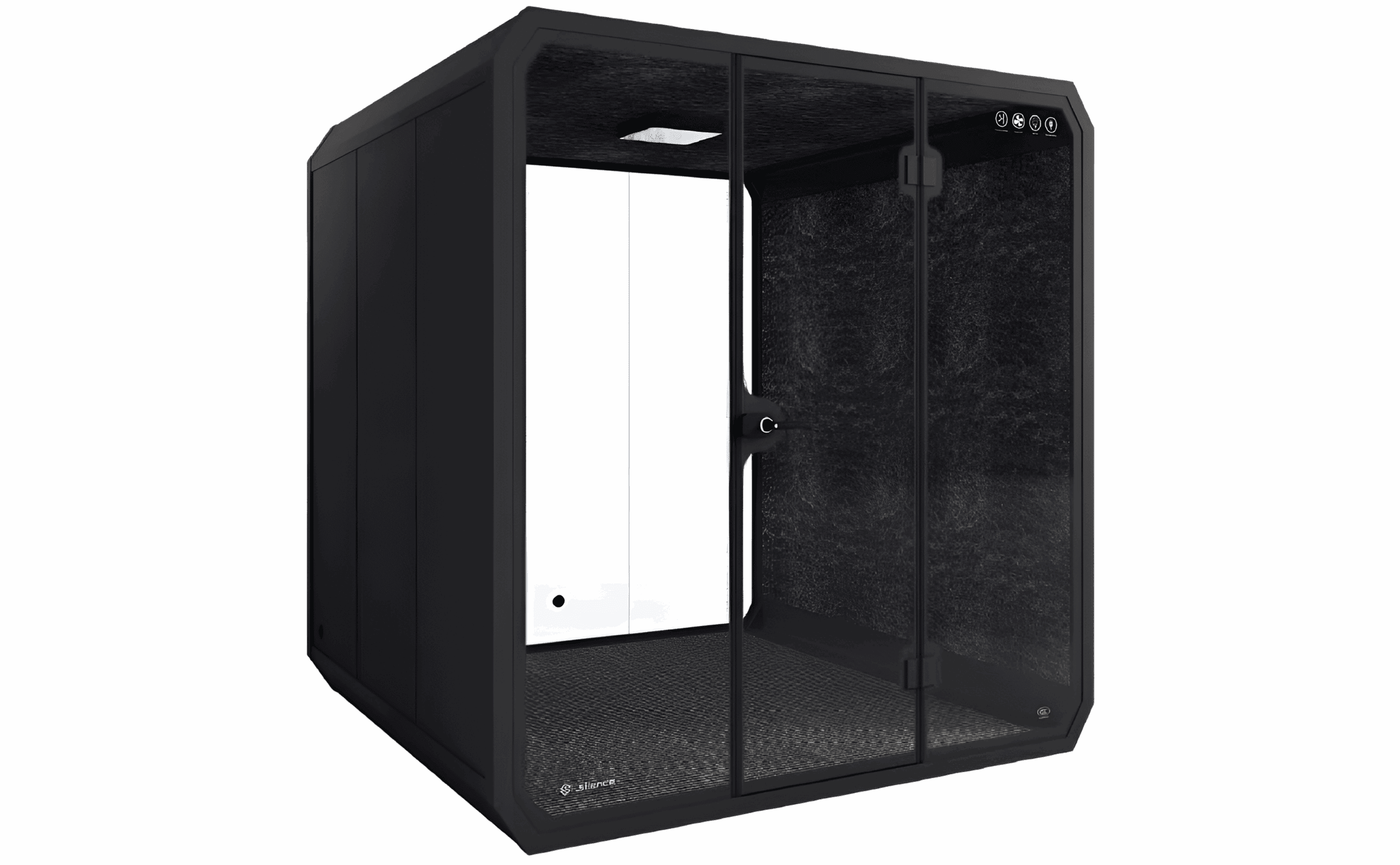تقدم كشك أكوستج مساحة عمل هادئة وخاصة مع عزل صوتي متقدم وألواح إطار ألمنيوم متينة. يضمن نظام الجدار رباعي الطبقات والزجاج الصوتي المزدوج أقصى قدر من تقليل الضوضاء. تشمل التشطيبات الداخلية ألواح PET صوتية، وسجاد نايلون، وإضاءة طبيعية ٤٠٠٠K للراحة. يتم تجديد الهواء كل ثلاث دقائق، مع توفير مصدر طاقة ومنافذ USB مدمجة. الألمنيوم المقاوم للحريق والمطلي بالبودرة يضمن القوة وتشطيبًا متجانسًا.