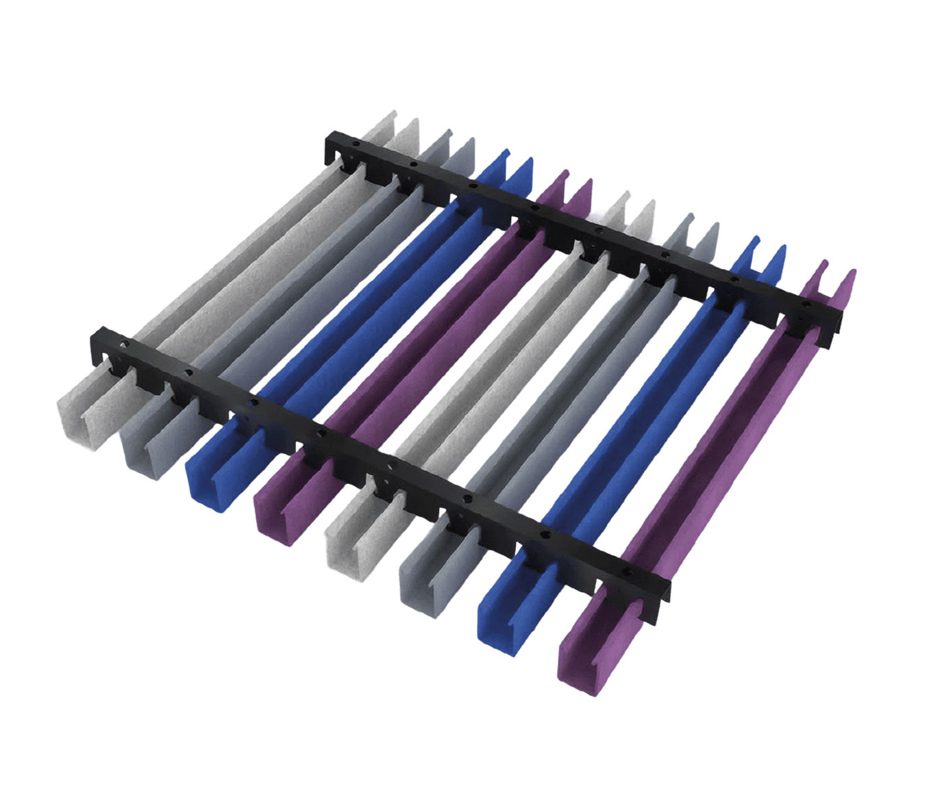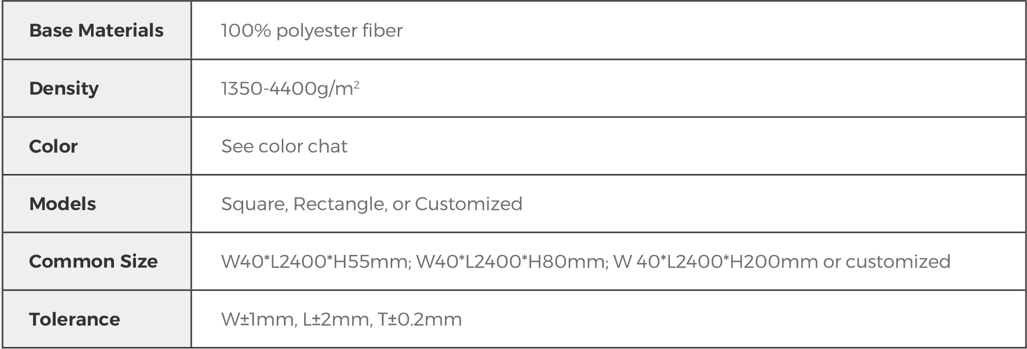 حواجز السقف الصوتية على شكل حرف U المصنوعة من ألياف البوليستر مصنوعة من ألياف بوليستر ١٠٠٪، ومضغوطة حرارياً لتأخذ شكل القطن. معدل الفتحات يزيد عن ٩٠٪، وتتمتع بأداء جيد في امتصاص الصوت عند الترددات المتوسطة والعالية. اللوح عالي الكثافة، صديق للبيئة، مقاوم للحريق، سهل التركيب والقص، ولا يثير الغبار، ويتوفر بألوان وتشطيبات متنوعة، مما يلبي جميع متطلبات العملاء الصوتية والديكورية.
