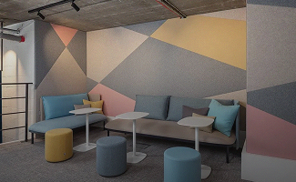 Custom fabric installations that enhance room acoustics by controlling sound reflections and improving clarity in spaces like offices or auditoriums.
